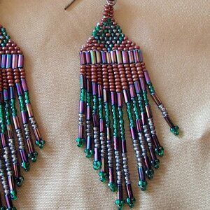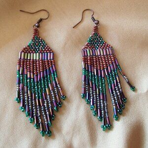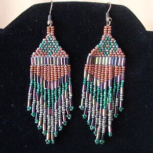 Lovely Seed Bead Dangling Sweeper Earrings Handcrafted Native American Preowned