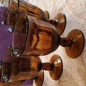 Lovely Set of Five Vintage Wine Goblets Provincial Paneled Brown by NORITAKE.