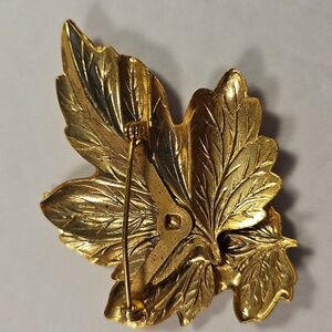 Lovely Soft Enamel AUTUMN Colors Leaf Brooch. Elegant brooch with gold and green leaf design. Perfect for adding a touch of nature to any outfit.