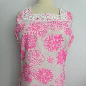 Lovely "The Lilly" Lilly Pulitzer Pink Floral Dress Crochet Detail Vintage Sz 14