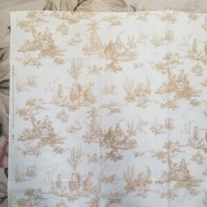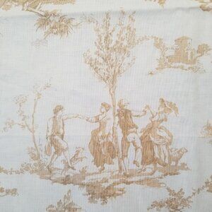 Drapery and upholstery quality, soft, smooth cotton, designer fabric, by Michael Miller Fabrics, with lovely 17th-century, French country scenes in golden mustard yellow on a creamy white background. Excellent for making curtains, drapes, pillows, cushions and other home decor. Discontinued Print C-485. $33.95 a yard new.