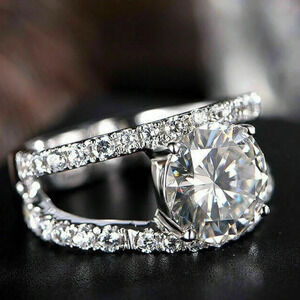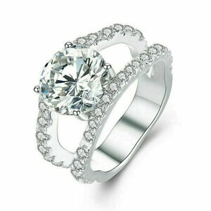 🌸Lovely Unique Flower Shape CZ Double Layer Silver Romantic Women Rings, K928