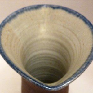 Lovely Unusual 1995 Art Pottery Salt Glazed Fan Shaped 10 Inch Vase