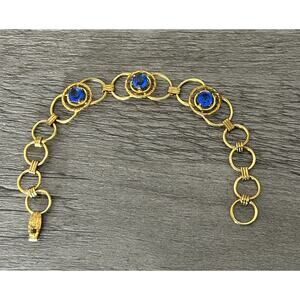 Lovely Vintage 1/20 Gold Filled on Sterling Silver Bracelet by Amco is a stunning piece of jewelry that exudes charm and elegance. This bracelet features a beautiful blue crystal as the main stone, set in a round shape within a chain style design. The gold color and sterling silver metal add a touch of luxury to the piece, making it a perfect accessory for any occasion. With a hook closure and signed by the brand Amco, this bracelet is a timeless vintage treasure that fits a wrist size of 6 1/2 inches.