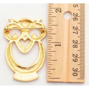 A vintage brooch of a gold tone owl in a simple minimalistic style.