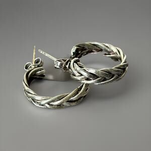 Lovely Vintage Navajo Braided Sterling Silver Hoop Post Earrings Measures 1/2”