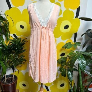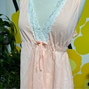 Lovely Vintage 1960s Peach Lace Trim Pin-Up Nylon Slip Nightgown