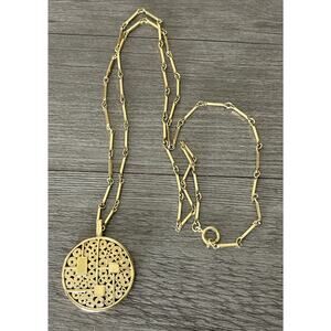 Lovely Vtg Gold Tone Sarah Coventry Medallion Necklace. Measures 30”