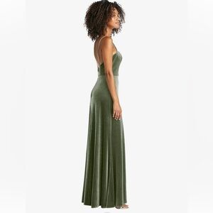 Lovely Womens Sage Green Velvet A-line High Slit Gown Size 4