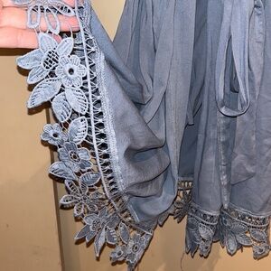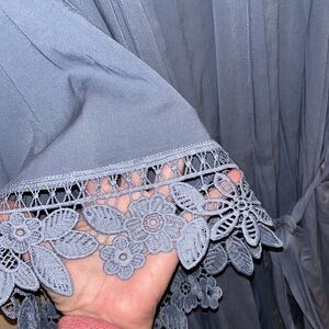 Lovely viscose material “K” robe with lace florals on sleeves and bottom. O/S