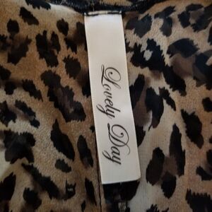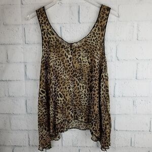 Semi sheer animal print tank top. Size M. Approximate measurements are pit to pit 18". Asymmetrical lengths are 15" - 27". Fun top to layer or wear over a swimsuit. Good gently used condition. No stains or holes.