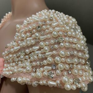 Lovely and beautiful dress. Cap Sleeve, shining rhinestone & pearls embellished. Lace up at the back neck.