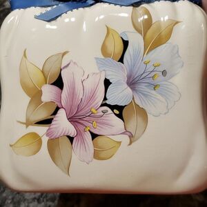 Lovely Vintage Floral Cream Colored Planter/ Vase - Porcelain