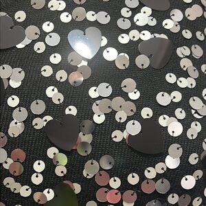 Round silver pailette sequins & black heart shaped pailette sequins sewn-in allover