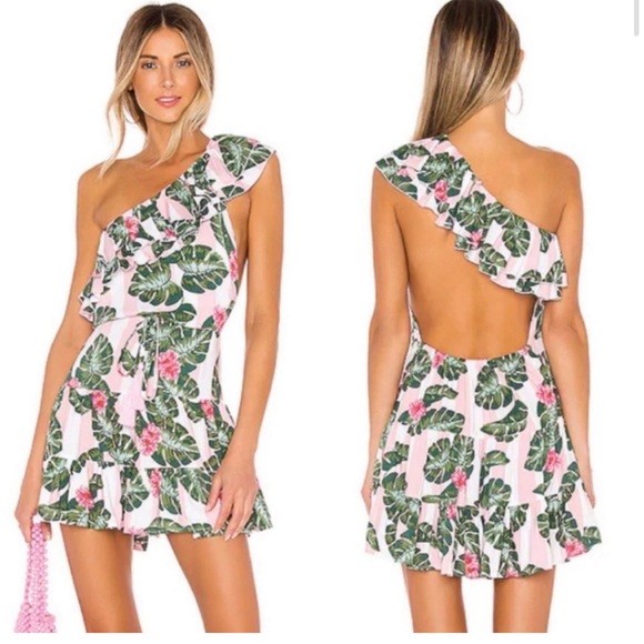 Tropical Summer mini dress. Light fabric size XS has an adjustable waist string. Purchased off Revolve. Worn once