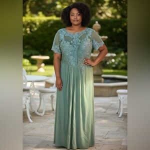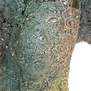 Step into elegance with this breathtaking dress! ✨ #FormalElegance #MintGreenMagic #LaceDetail #MaxiGown