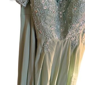 Step into elegance with this breathtaking dress! ✨ #FormalElegance #MintGreenMagic #LaceDetail #MaxiGown