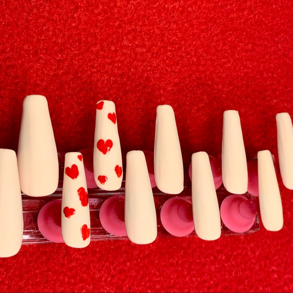 These are press on nails. I can make this set on any nails shape or length of your desire just message me with sizes of your nails so it’s a custom fit to you !💖