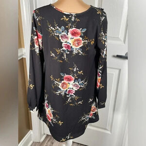 Loveriche Black Floral Bell Sleeve Dress Small NWT