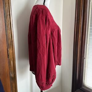 New with tags, very roomy, boxy fit. Balloon long sleeves, in excellent condition. Color is wine.