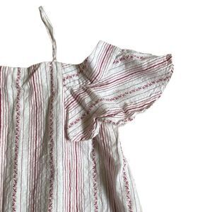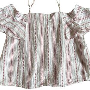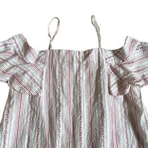 Loveriche Cold Shoulder Top Blouse Size L White Red Stripes Ruffle Sleeves