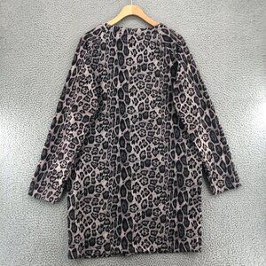 Loveriche Dress Womens Large Gray Leopard Shift Mini Fleece Zipper Long Sleeve