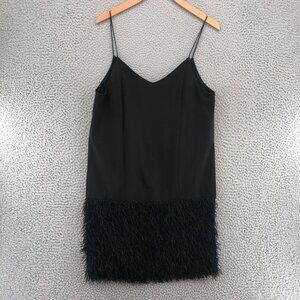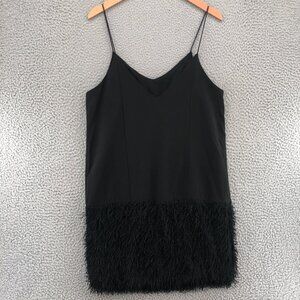 Loveriche Dress Womens Medium Black Mini Slip Shift Spaghetti Strap Fringe Panel