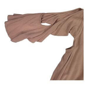 Gorgeous taupe colored cold shoulder top with open sleeve design that complements your arms.
