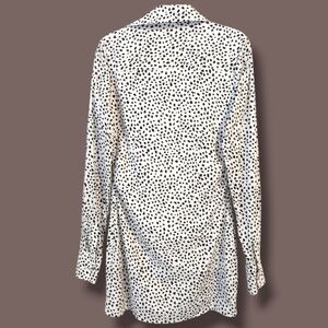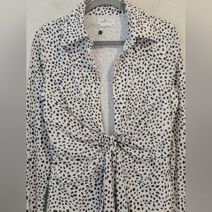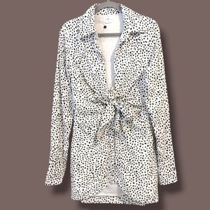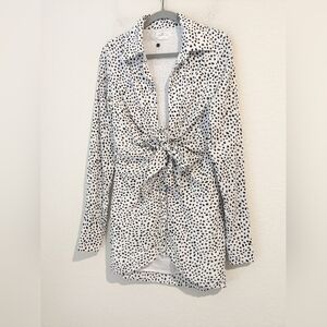 Lovers + Friends Black And White Leopard Cotton Long Sleeve Plunging Neckline Collared Tie Front Mini Dress Flirty Date Night.