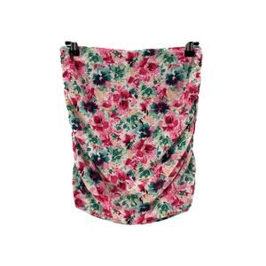 Lovers And Friends 'Erica' Pink Polyester Mini Skirt Size S: fully lined, pull-on styling, perforated jersey fabric with ruched side panel, measurements: 13 inch width x 15 inch length.