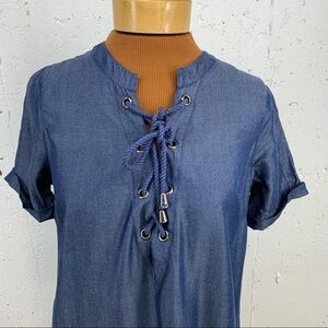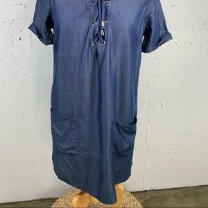 Lovers + FRIENDS size Small Lace Up V Neck Denim Shift Dress