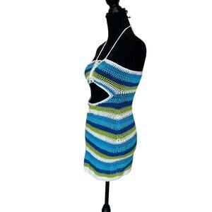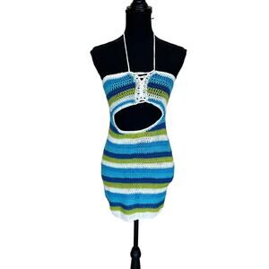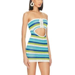 Lovers + Friends Alexia Crochet Mini Dress MEDIUM Bodycon Cut Out Resort $118