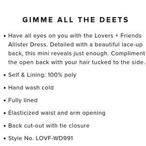 Lovers + Friends Allister Long Sleeve Open Lace Up Back Mini Dress
