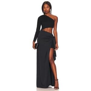 Lovers & Friends Amelie One Shoulder Gown Cut Out Wrap Tie Detail Black Size XS