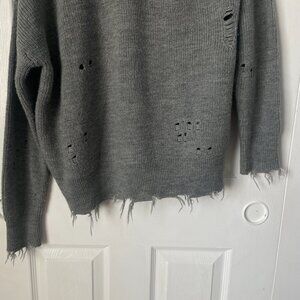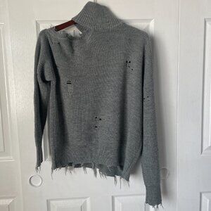 Lovers & Friends Arlington Distressed Turtle Neck Oversized Gray Pullover Sweater. Knit sweater with cold shoulder. Intentional distressing throughout. Frayed hem. Banded edges. Sold out style and best seller on Revolve and Lovers & Friends website. Retails $158. In excellent condition with no flaws to call out.