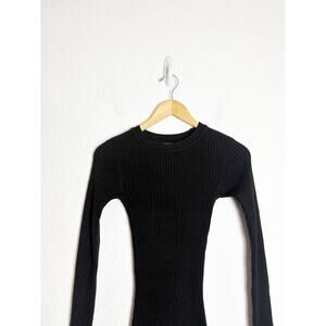 Lovers + Friends Around the Fire Ribbed Midi Sweater Dress Size XS Black Knit