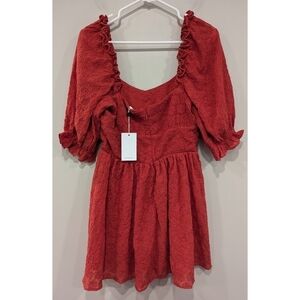 🆕 Lovers + Friends Asher Textured Mini Dress in Tomato Red Size Small