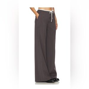 A grey pinstripe pant with a drawstring waistband. Never worn and in perfect condition. Has pockets!!