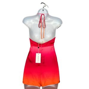 Lovers + Friends Barbie Pink Ombre Satin Romper SMALL Halter Wide Leg Addie NEW