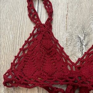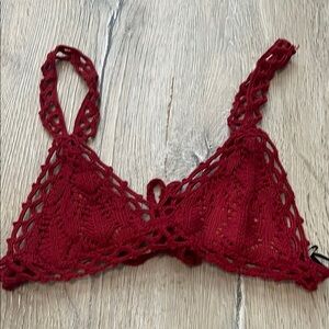 This elegant red crochet bralette offers a stylish and comfortable fit. Perfect for layering or wearing on its own.