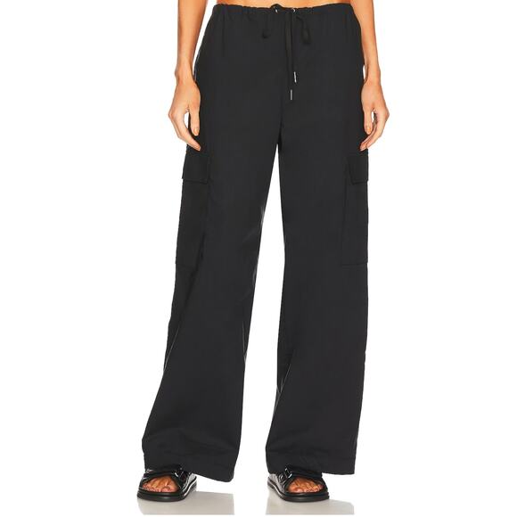 Lovers + Friends Black Baggy Cargo Pants LARGE Wide Leg Drawstring Low Rise $198 NEW