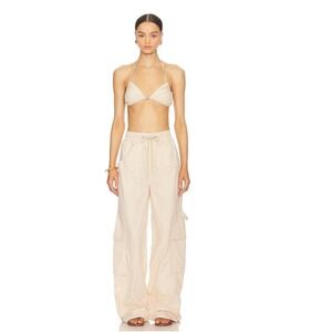 Lovers + Friends Black Baggy Cargo Pants LARGE Wide Leg Drawstring $198 NEW