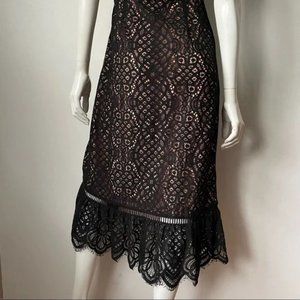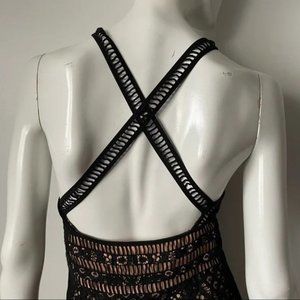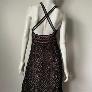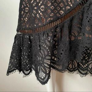 Lovers + Friends Black Lace Deep V Frill Sleeveless Dress, M