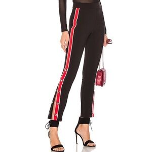 - Description: Cut from form fitting fabric with cool-girl athleisure striping, with snap button closures allowing you to reveal a little leg, and your favorite heels.