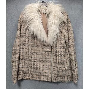 Lovers + Friends Brayden Tweed Faux Fur Lined Jacket Size Medium