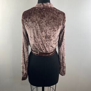 Lovers + Friends Brown Floyd Velvet Top Deep V-Neck Cropped Long Sleeve Size S