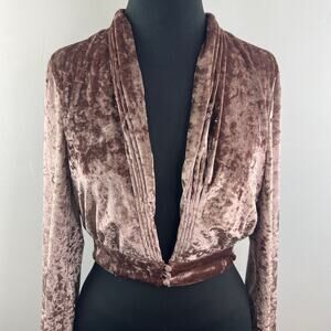 Lovers + Friends Brown Floyd Velvet Top Deep V-Neck Cropped Long Sleeve Size S