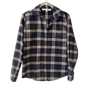 Lovers + Friends Button Up Shirt Plaid Flannel Studded Pockets Grunge Y2K XS