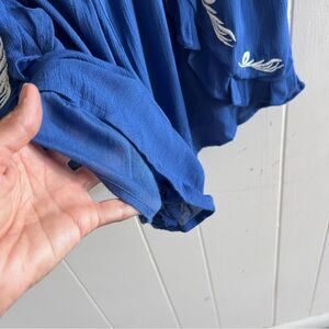 In beautiful pre-loved condition from a smoke and pet free home. Please review all photos before purchase and bundle for a great discount. A small defect in the fabric that does not take away from it at all. This is such a gorgeous romper that can be dressed down with some sandals, or dressed up with some high heels for a more formal event.