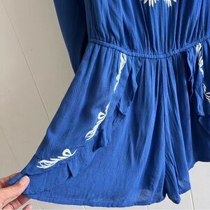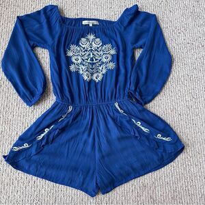 Off-the-shoulder, but right on-trend. The Carmella Romper by Lovers + Friends features delicate floral embroidery and ruffled trim colliding with a loose blouson fit to make this the go-to item of the season.